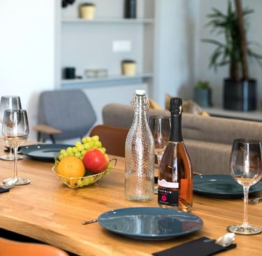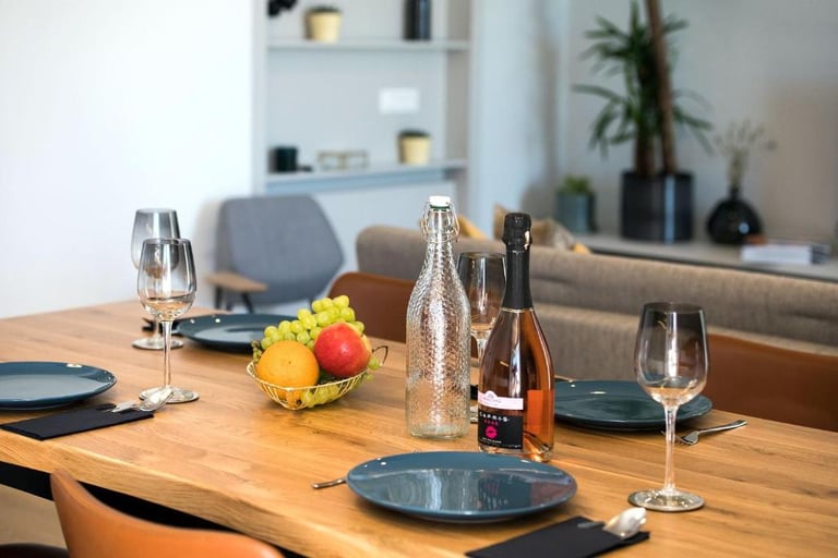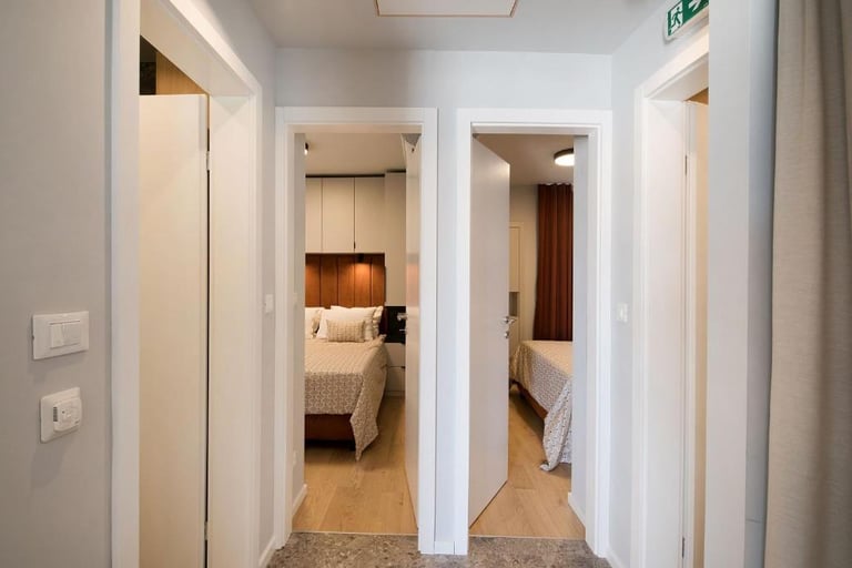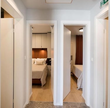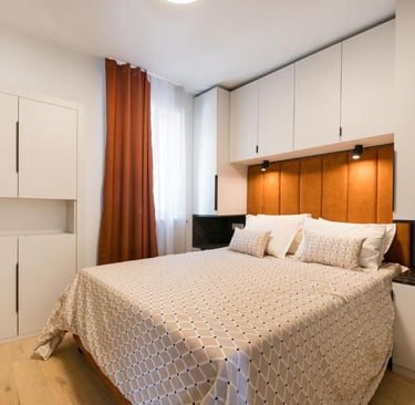 Relax in a spacious apartment with modern Mediterranean design and thoughtful amenities.